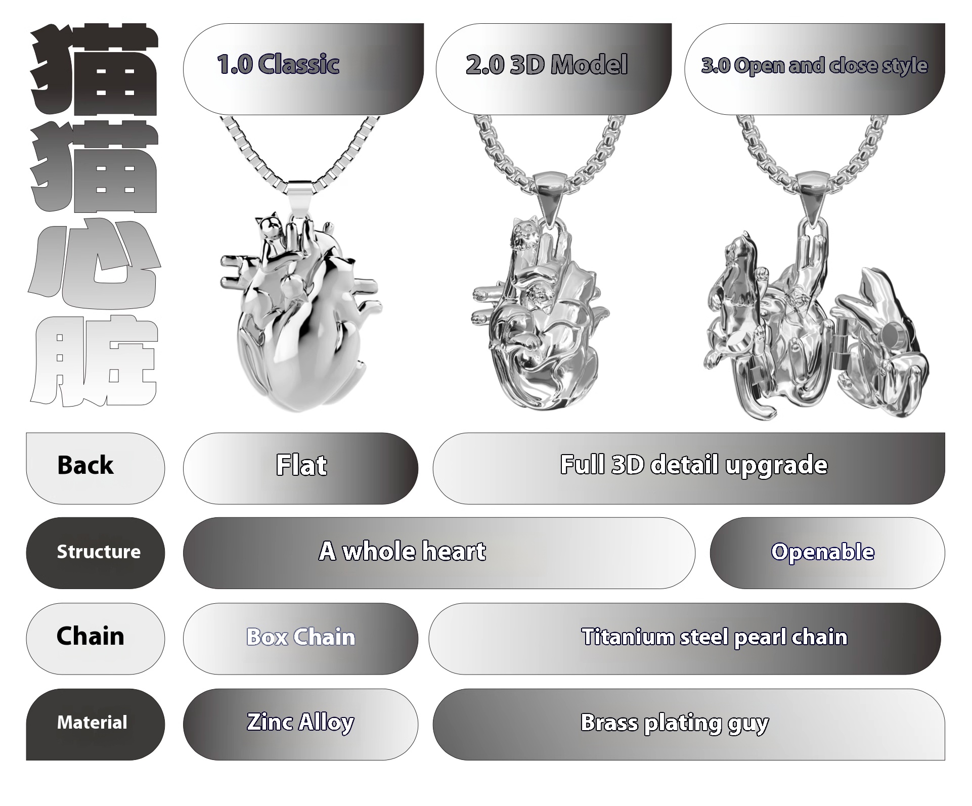 Heart necklace made of three cats Original independent design stacking couple sweater chain